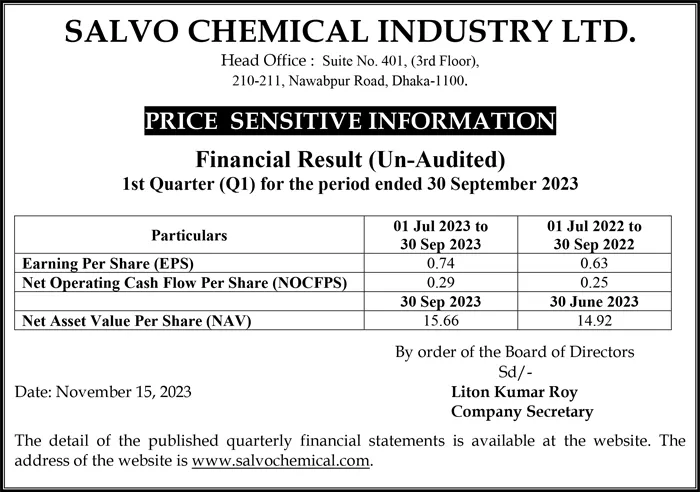 Price Sensitive Information of Salvo Chemical Industry Limited