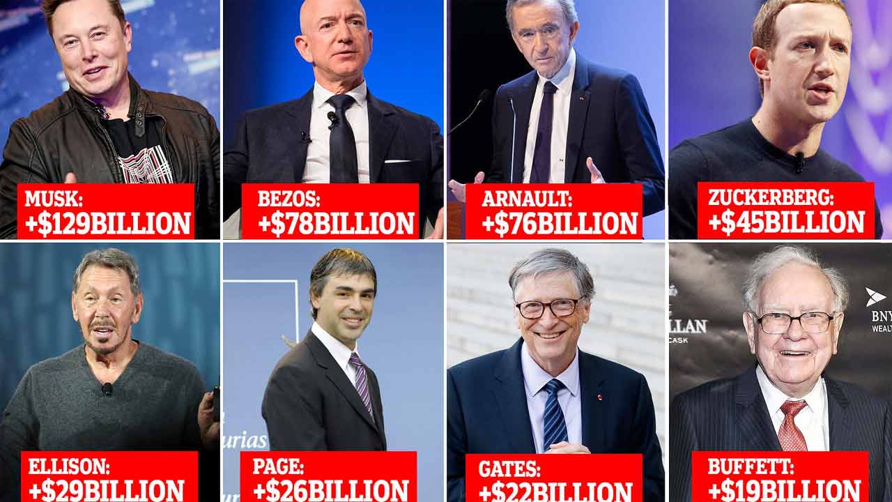 এরা হলেন ইলন মাস্ক, বেরনার্ড আরনল্ট, জেফ বেজোস, জেরি অ্যালিসন এবং মার্ক জুকারবার্গ। সুইজারল্যান্ডের বিখ্যাত শহর দাভোসে অবস্থিত বিশ্বের বৃহত্তম অর্থনৈতিক জোট ওয়ার্ল্ড ইকোনমিক ফোরামের বরাত দিয়ে এক বিবৃতিতে যুক্তরাজ্যভিত্তিক দাতব্য সংস্থাগুলোর জোট অক্সফাম জানিয়েছে, ২০২০ সালে যৌথভাবে এই ৫ জনের সম্পদের পরিমাণ ছিল ৪৬ হাজার ৪০০ কোটি ডলার; আর বর্তমানে এই অঙ্ক পৌঁছেছে ৮৬ হাজার ৯০০ ডলারে। অর্থাৎ শতাংশ হিসেবে গত চার বছরে এই পাঁচজনের সম্পদ বেড়েছে ১১৪ শতাংশ।