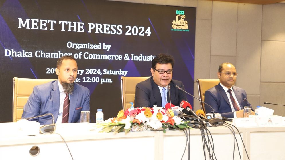 শনিবার (২০ জানুয়ারি) ডিসিসিআই আয়োজিত দেশের সমসাময়িক অর্থনীতির সার্বিক পরিস্থিতি এবং ২০২৪ সালে ডিসিসিআইর বর্ষব্যাপী কর্মপরিকল্পনা সম্পর্কে সাংবাদিকদের সঙ্গে মতবিনিময় সভায় ঢাকা চেম্বার অব কমার্স অ্যান্ড ইন্ডাস্ট্রি’র (ডিসিসিআই) সভাপতি আশরাফ আহমেদ এসব কথা বলেন। সংবাদ সম্মেলনে ডিসিসিআই মালিক তালহা ইসমাইল বারী, সহ-সভাপতি মো. জুনায়েদ ইবনে আলী সহ পরিচালনা পর্ষদের সদস্যবৃন্দও উপস্থিত ছিলেন।
