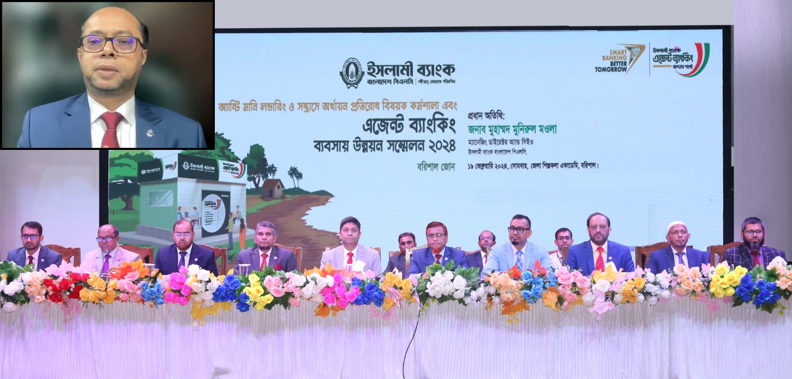 ইসলামী ব্যাংক বাংলাদেশ পিএলসির বরিশাল জোনের এজেন্ট ব্যাংকিং ব্যবসায় উন্নয়ন সম্মেলন এবং মানি লন্ডারিং ও সন্ত্রাসে অর্থায়ন প্রতিরোধ বিষয়ক কর্মশালা ১৯ ফেব্রুয়ারি ২০২৪, জেলা শিল্পকলা একাডেমিতে অনুষ্ঠিত হয়েছে।