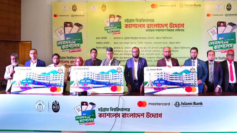 ইসলামী ব্যাংক বাংলাদেশ পিএলসি ও মাস্টারকার্ড যৌথভাবে চট্টগ্রাম বিশ্ববিদ্যালয়ে পূর্ণাঙ্গ ক্যাশলেস ক্যাম্পাস উদ্বোধন করেছে। বাংলাদেশ ব্যাংকের ‘ক্যাশলেস বাংলাদেশ’ উদ্যোগের অংশ হিসেবে চালু হওয়া এই প্রকল্পের মাধ্যমে শিক্ষার্থী, শিক্ষক ও দর্শনার্থীরা ক্যাম্পাসের সর্বত্র ডিজিটাল পেমেন্টে লেনদেন করতে পারবেন। এতে নগদ অর্থের ওপর নির্ভরশীলতা উল্লেখযোগ্যভাবে কমবে এবং স্মার্ট আর্থিক সেবার প্রসার ত্বরান্বিত হবে।