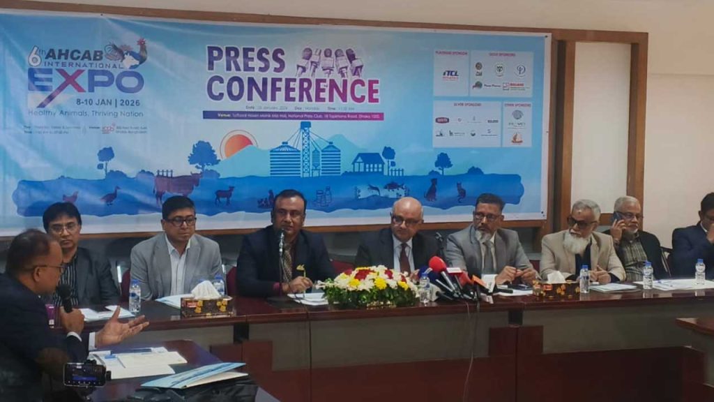 বাংলাদেশের প্রাণিস্বাস্থ্য, মৎস্য ও প্রাণিসম্পদ খাতে দেশি ও বিদেশি বিনিয়োগ সম্প্রসারণ এবং টেকসই প্রবৃদ্ধি ত্বরান্বিত করতে তিন দিনব্যাপী আহকাব আন্তর্জাতিক এক্সপো অনুষ্ঠিত হতে যাচ্ছে। ‘সুস্থ প্রাণী, সমৃদ্ধ জাতি’ স্লোগানে আগামী ৮-১০ জানুয়ারি রাজধানীর পূর্বাচল এক্সপ্রেস হাইওয়ে সংলগ্ন ইন্টারন্যাশনাল কনভেনশন সিটি বসুন্ধরায় (আইসিসিবি) অনুষ্ঠিত হবে অ্যানিম্যাল হেলথ কোম্পানিজ অ্যাসোসিয়েশন অব বাংলাদেশ (আহকাব)-এর ষষ্ঠ আন্তর্জাতিক এক্সপো–২০২৬।