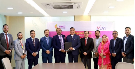 এসবিএসি ব্যাংক ও মে ইন্টারন্যাশনাল ট্রেড সার্ভিসের মধ্যকার চুক্তি স্বাক্ষর