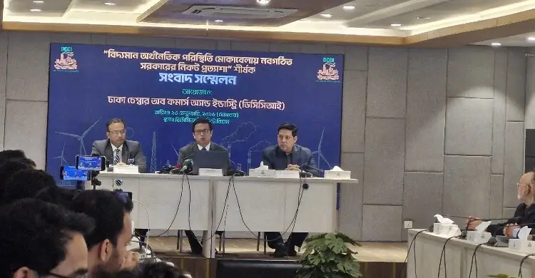 সোমবার (২৩ ফেব্রুয়ারি) দুপুরে রাজধানীর মতিঝিলে ঢাকা চেম্বার অডিটরিয়ামে আয়োজিত বিদ্যমান অর্থনৈতিক পরিস্থিতি মোকাবিলায় নবগঠিত সরকারের কাছে ঢাকা চেম্বারের প্রত্যাশা বিষয়ক এক সংবাদ সম্মেলনে ডিসিসিআই সভাপতি তাসকীন আহমেদ এসব কথা বলেন। ডিসিসিআই এই সংবাদ সম্মেলনের আয়োজন করে।