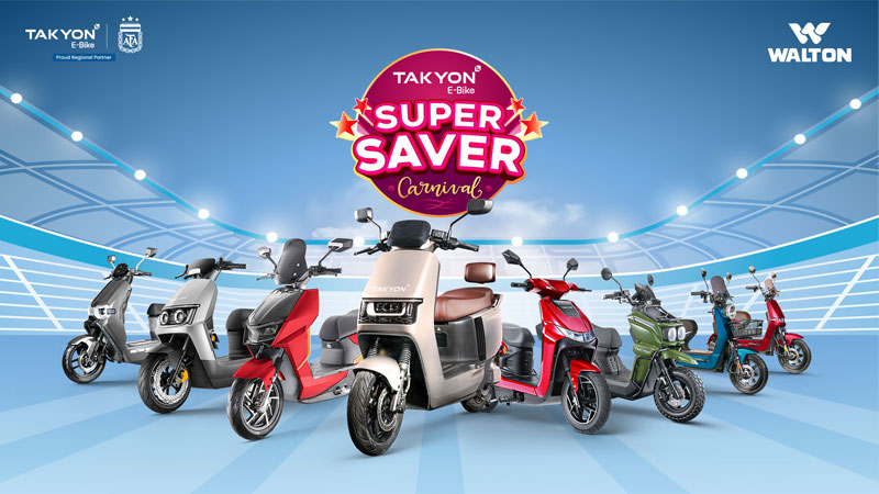 বৈশ্বিক জ্বালানি সংকটে তেল চালিত বাইক বা যানবাহন ব্যবহারকারীরা যখন যাতায়াতে ভোগান্তি পোহাচ্ছেন, তখনই গ্রাহকদের কথা মাথায় রেখে ওয়ালটন-এর তাকিওন ইলেকট্রিক বাইক শুরু করেছে ‘সুপার সেভার কার্নিভাল’। যেখানে তাকিওন ইলেকট্রিক বাইকে দেয়া হচ্ছে ৯ হাজার ৬০০ টাকা পর্যন্ত ডিসকাউন্ট। সেইসঙ্গে ভাগ্যবান একাধিক গ্রাহক পাচ্ছেন আর্জেন্টিনা ফুটবল দলের খেলা সরাসরি মাঠে বসে দেখার সুযোগ।